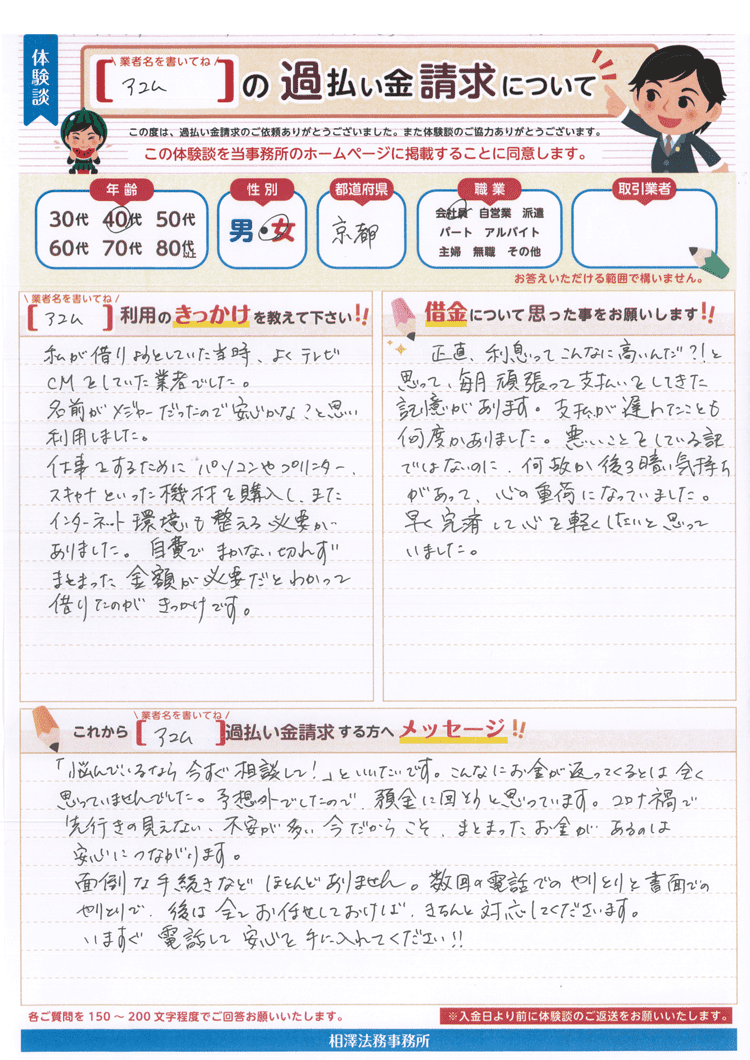 こんなにお金が返ってくるとは全く思っていませんでした。