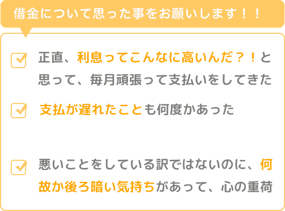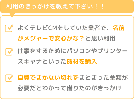 自費でまかない切れずまとまった金額が必要だとわかって借りたのがきっかけです。