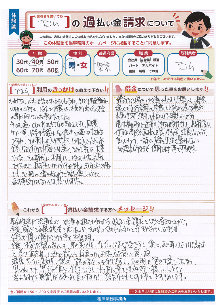 その時代に利用して、つないでいた状態でしたので、返す事には十分手がまわっていなかったですね。