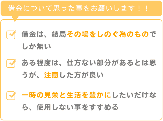結局その場をしのぐ為のものでしか無いし、将来稼ぐであろう金額を前借しているものと考える事が出来るならば、使用しても良いのでは無いでしょうか。