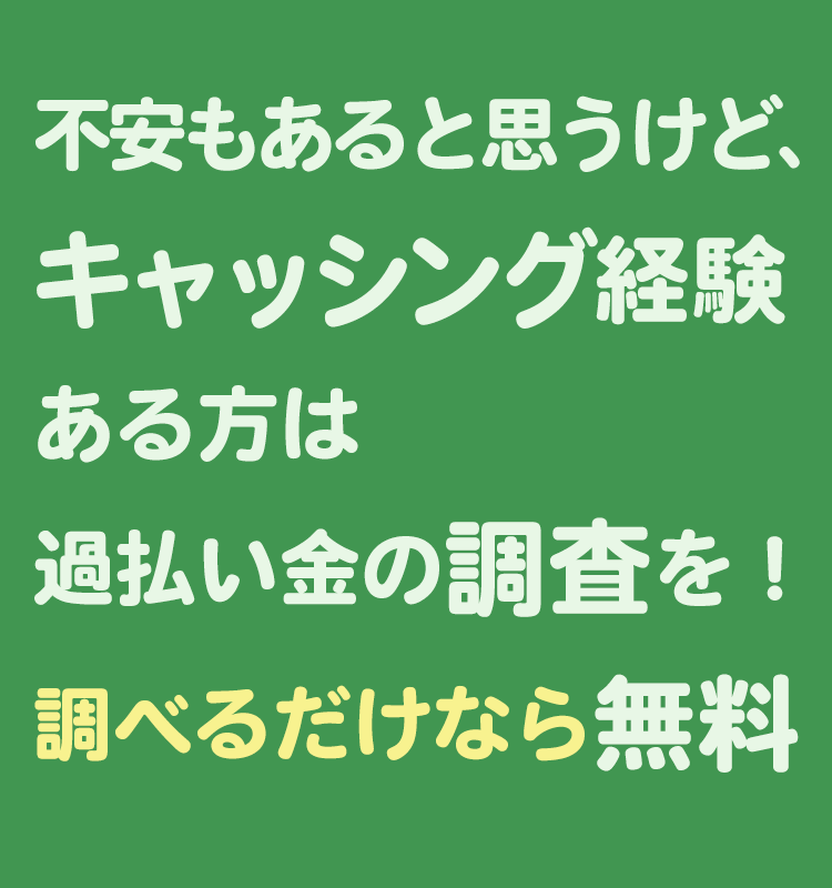不安もあると思いますが、キャッシング経験のある方は一度、過払い金があるかの確認だけでもすることをおすすめします。