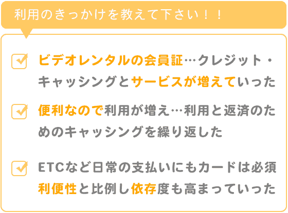 ETCや自動車保険など日常の支払いをするにもカードは必須だと思うので、利便性と比例して依存度も高まっていった印象です。