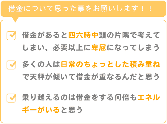 借金があると、本当に頭の中の一部をずっと持っていかれるというか、四六時中どこか頭の片隅で考えてしまいます。