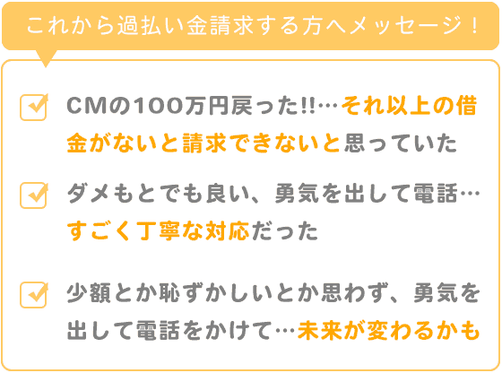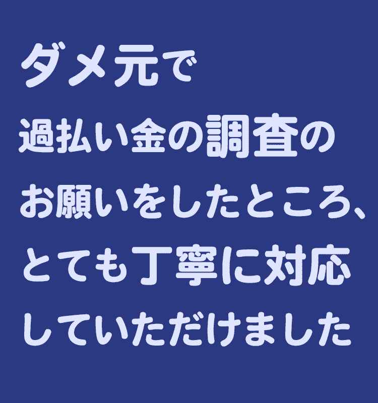 ダメ元で過払い金調査お願いしたところ、とても丁寧な対応で満足