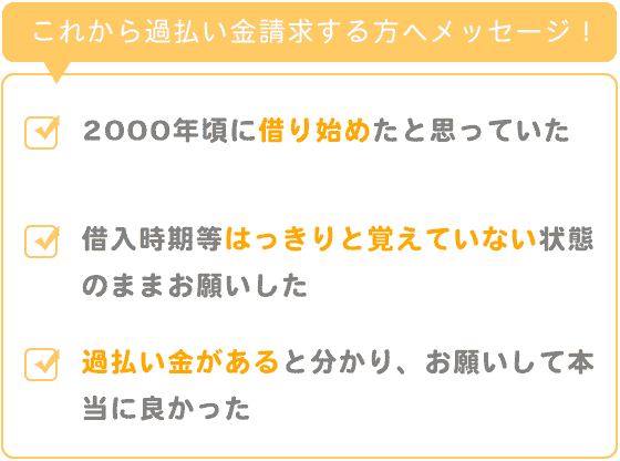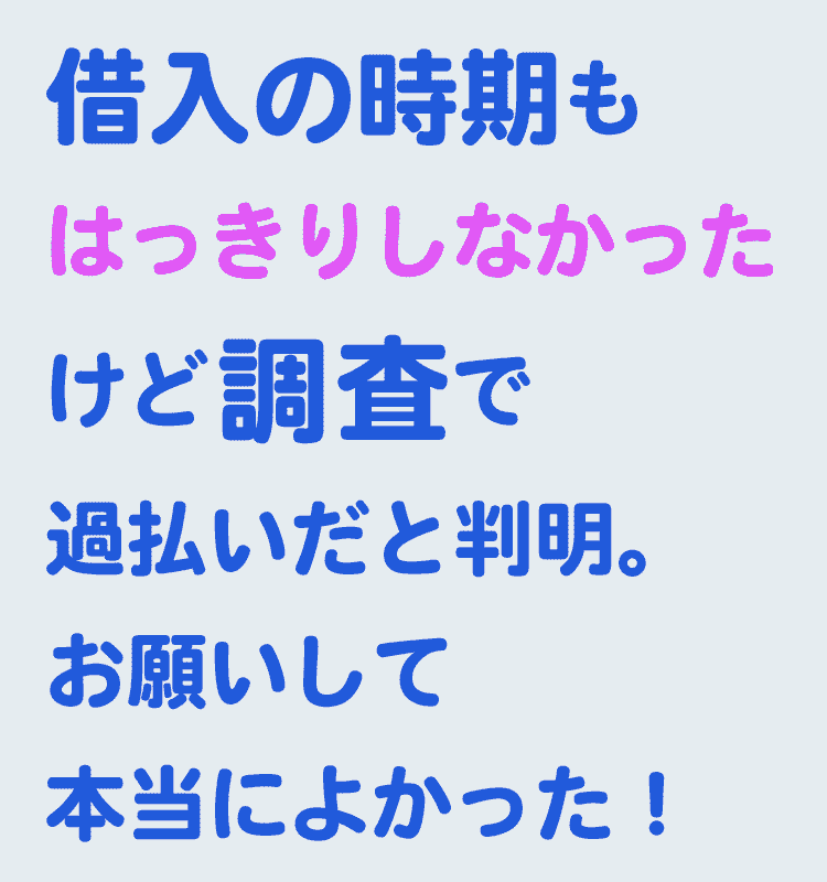 それでも過払い金があると分かりましたしお願いして本当に良かったと感謝しています。