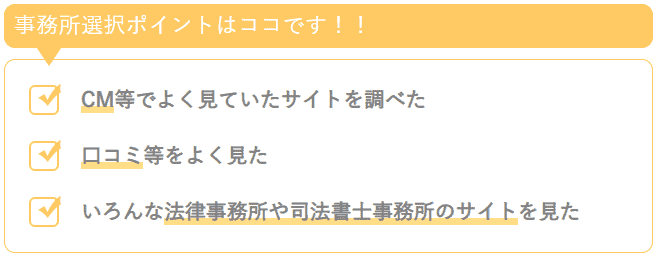 そのあとに口コミ等を見て、いろんな法律事務所や司法書士事務所のサイトを見ました。