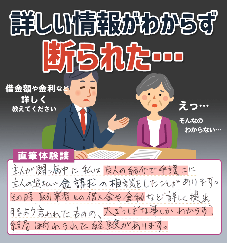 お金を借りた夫は亡くなっているので、どこで、いつから、いくら夫が借りたのか、はっきりしたことがわからないのに、それでもできるのか?
