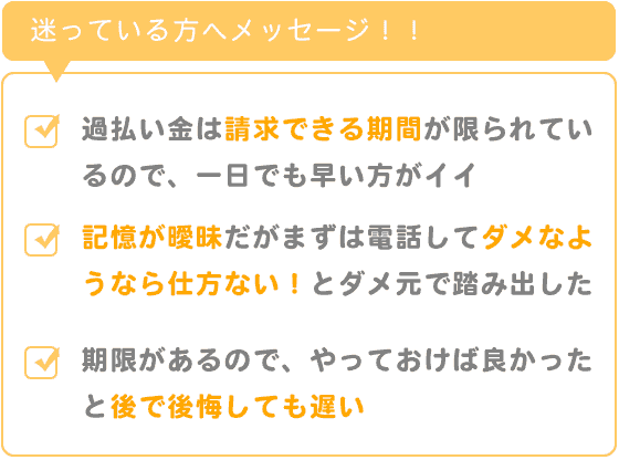 過払い金は請求できる期間が限られているので、一日でも早い方がイイです。