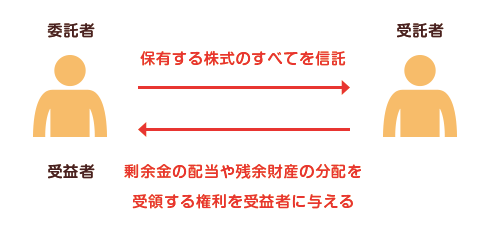 この場合、社長Aが委託者と受託者を兼ね、息子Bが受益者となるという構造になります。この際、信託財産は自社株ということになります。