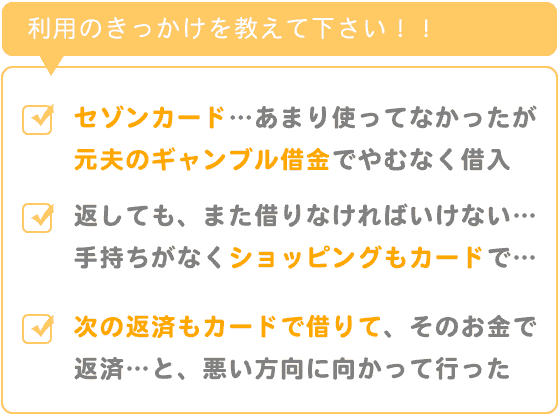 ショッピングとかでも、あまりカードを使うことはなかったのですが、元夫のギャンブル借金で、やむやむお金を借りる事に…