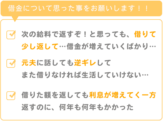 でも、元夫に話しても逆ギレして、また借りなければ生活していけないしで…