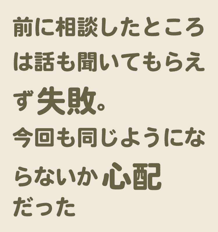 過去に違う所で話だけした事がありましたが全々話を聞いてくれず対応してくれなかった事があったので、今回も同じようになるんだろうと不安がありました。