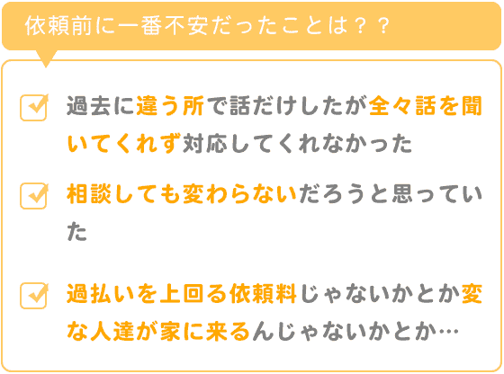 依頼前に気になっていたところは、料金の部分でした。