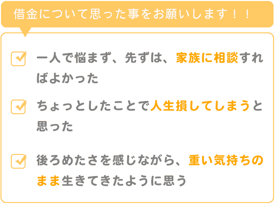 一人で悩まず、先ずは、家族に相談すればよかったです。