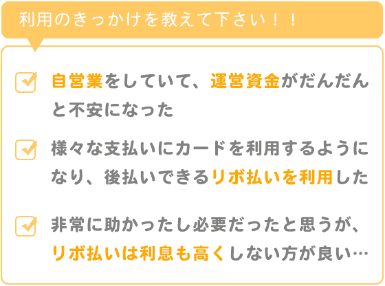 そのため、ショッピングでもなるべく後払いにしたいという思いからカードを利用するようになり、現金も無くなってしまう不安から、あとで返せばいいやという気持ちで、リボルディング払いという方式で借金をしていました。