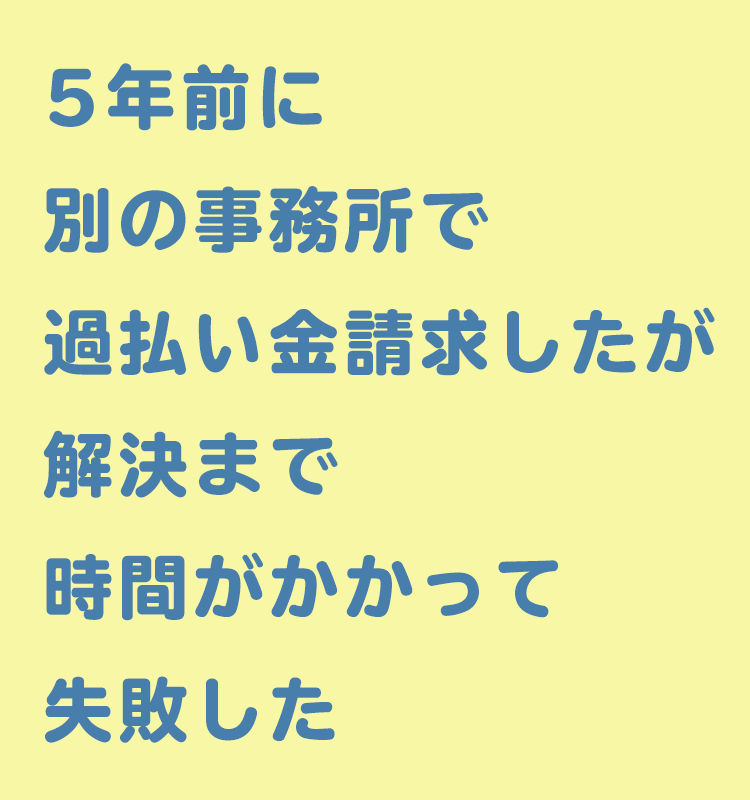 5年前に別事務所で過払い金請求するも解決に時間がかかり失敗