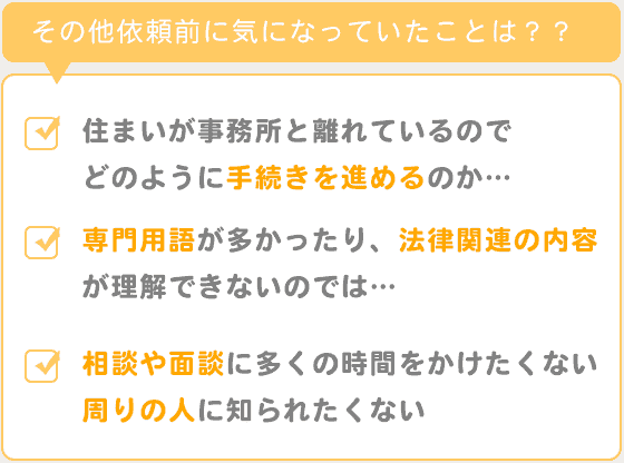 ・私の住まいが事務所と離れていたことでどのように手続きを進めるのかが不安でした。