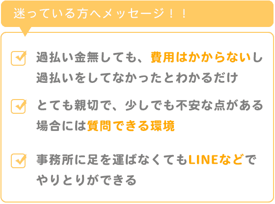 自分が過払い金の対象になるか分からずこのような事務所に連絡したこともなかったのでどのようなことを聞かれるかなどとても不安でした。