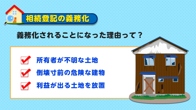 そもそも、相続登記がきちんと行われていれば、所有者が不明の土地が発生することはありません。しかし、きちんと相続登記が行われないことにはさまざまな原因があります。
