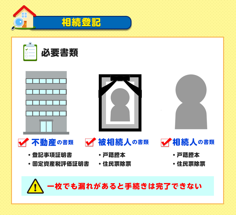 何度も役所や法務局を往復しなくて済むよう、あらかじめ必要書類のチェックを。