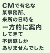 有名な某CM事務所、来所の日時を一方的に案内…不信感しかなく