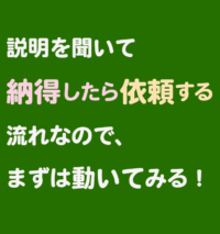 説明を聞いて納得したら依頼する流れなので、まずは動いてみる!