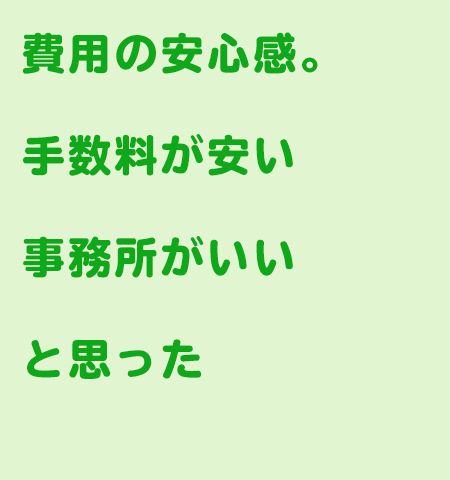 費用の安心感。手数料が安い事務所がいいと思った