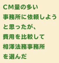 CM大手と費用を比較して、全然安かった相澤法務事務所を選んだ