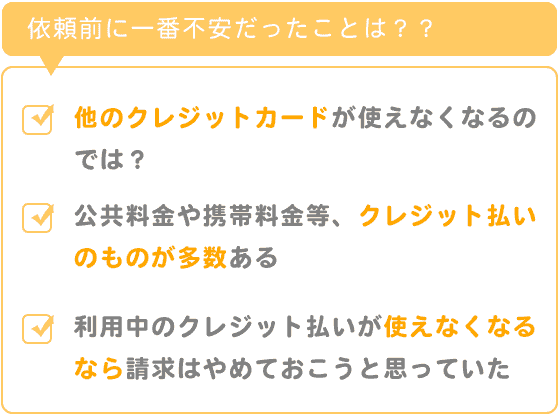 過払い金請求する事で、他のクレジットカードが使えなくならないかが一番不安でした。
