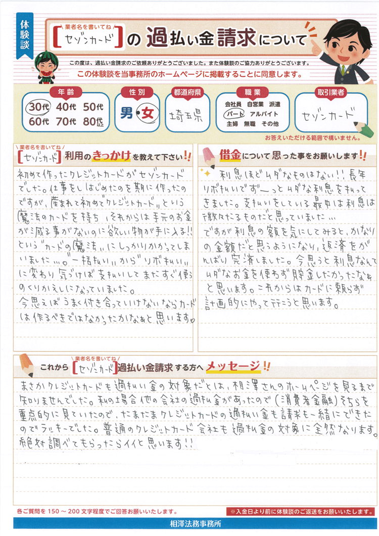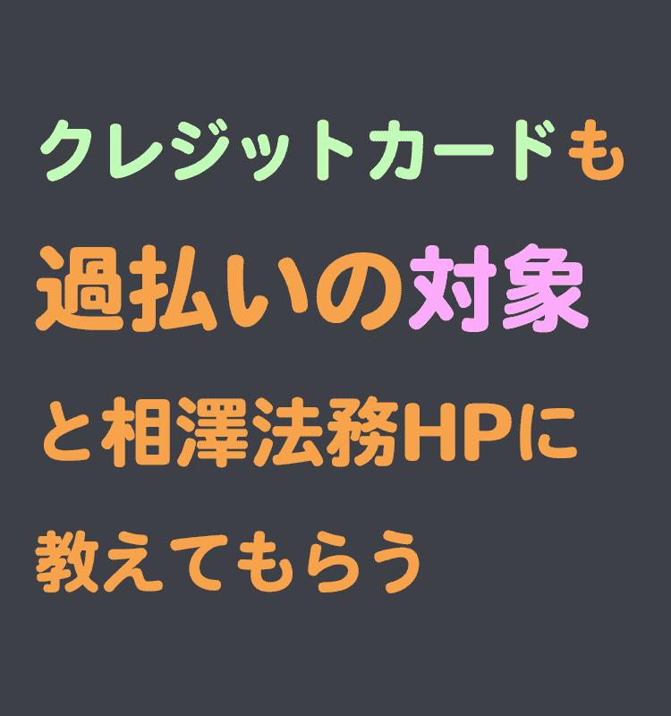 まさかクレジットカードも過払い金の対象だとは、相澤さんのホームページを見るまで知りませんでした。