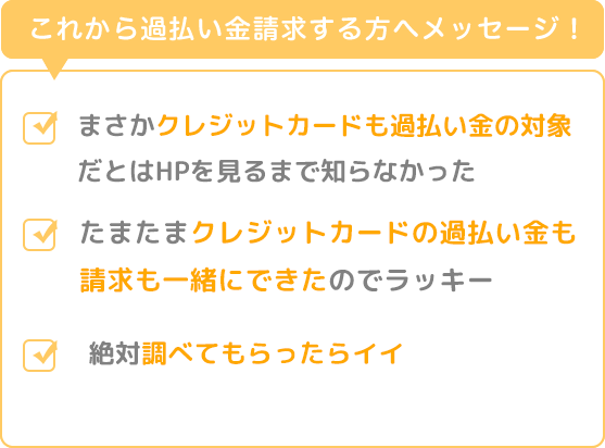 私の場合他の会社の過払金があったので(消費者金融)そちらを重点的に見ていたので、たまたまクレジットカードの過払い金も請求も一緒にできたのでラッキーでした。