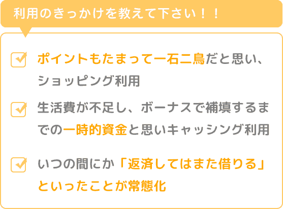 生活費が不足し、ボーナスで補填するまでの一時的資金と思い、キャッシングを利用