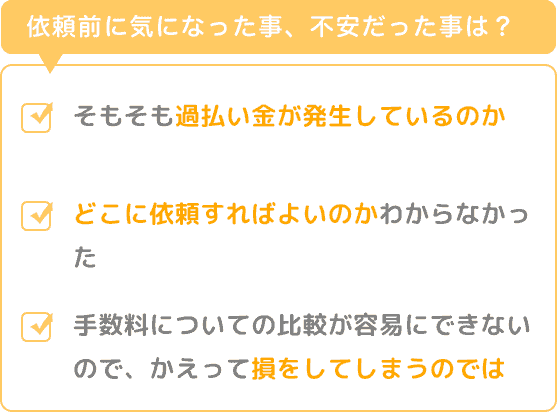 私が依頼前に不安に思っていたことは大きく3点あります。