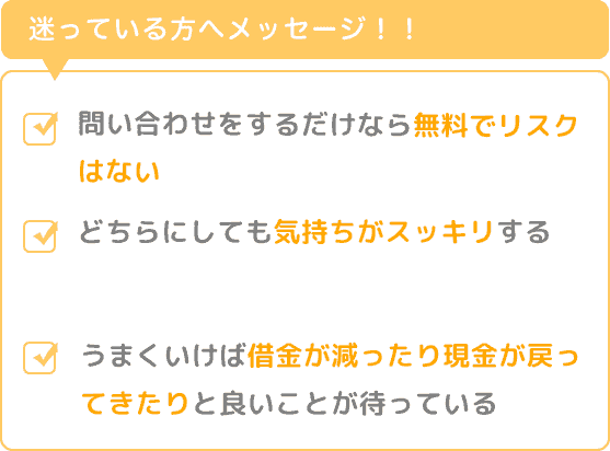 そしてどちらにしても気持ちがスッキリしますし、うまくいけば借金が減ったり現金が戻ってきたりと良いことが待っています。
