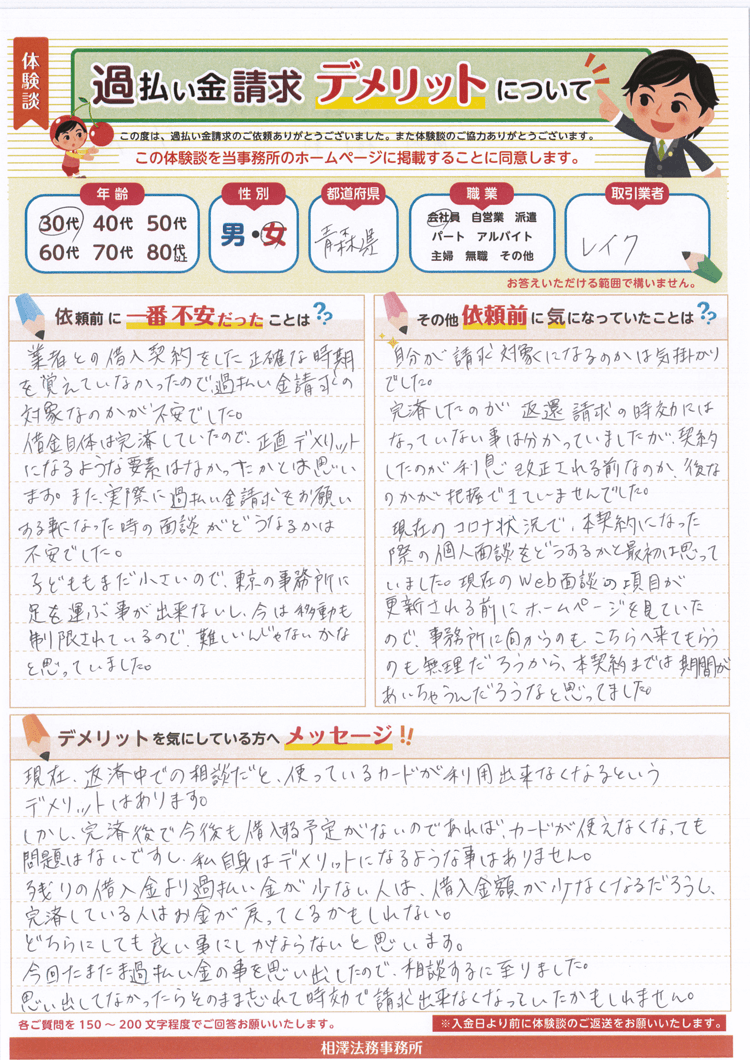 完済したのが返還請求の時効にはなっていない事は分かっていましたが、契約したのが利息改正される前なのか、後なのかが把握できていませんでした。現在のコロナ状況で、本契約になった際の個人面談をどうするかと最初は思っていました。