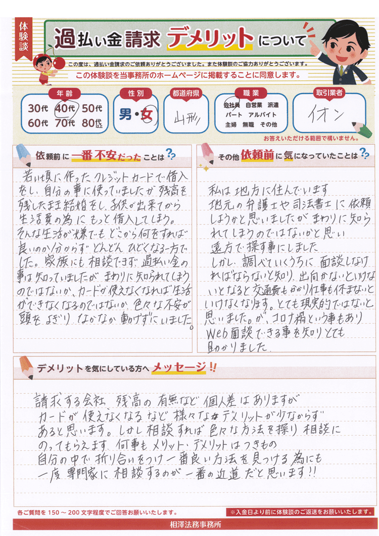 費用明確でHPは充実、WEB面談もある相澤さんに過払い相談
