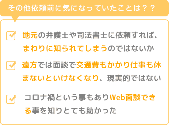 地元の弁護士や司法書士に依頼しようかと思いましたがまわりに知られてしまうのではないか