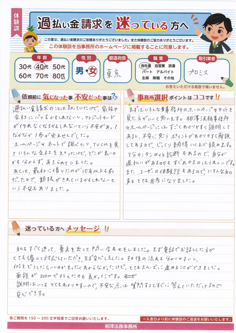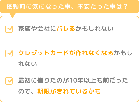 過払い金請求のことは知っていたけど、家族や会社にバレるかもしれないし、クレジットカードが作れなくなるかもしれないという不安があってなかなか1歩が出ませんでした。