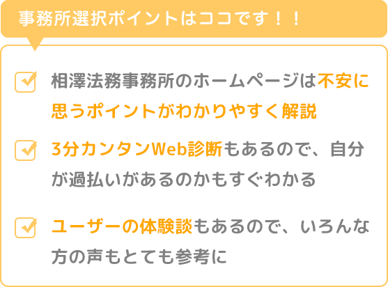 3分カンタンWeb診断もあるので、自分が過払いがあるのかもすぐわかるのはうれしいです。