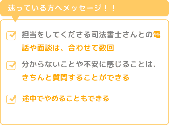 担当をしてくださる司法書士さんとの電話や面談は、合わせて数回あります。