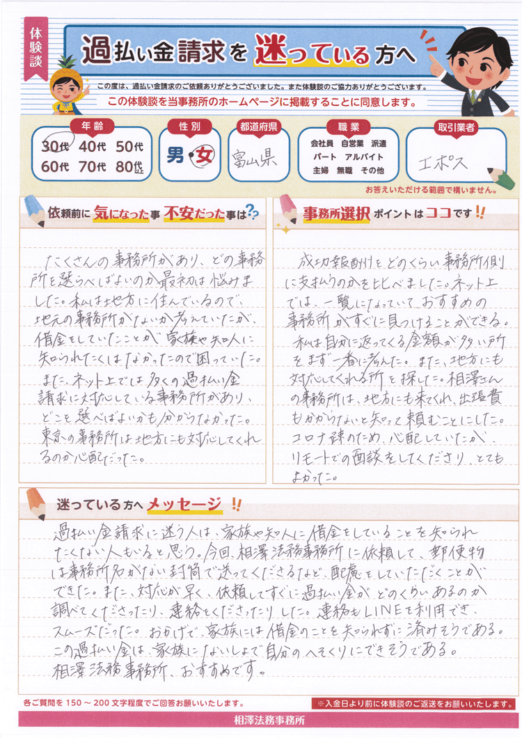 また、ネット上では多くの過払い金請求に対応している事務所があり、どこを選べばよいかも分からなかった。