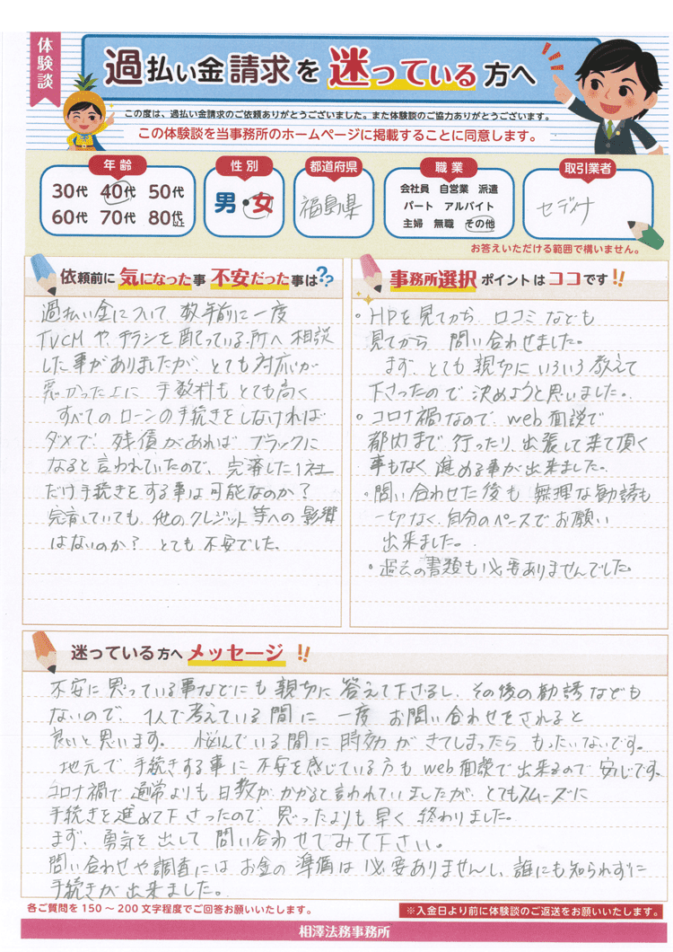 ・問い合わせた後も無理な勧誘も一切なく、自分のペースでお願い出来ました。
