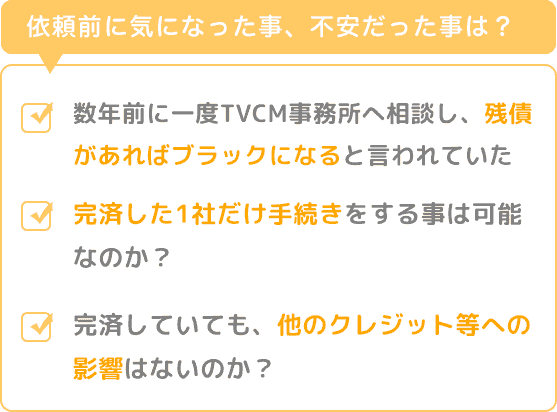 過払い金について、数年前に一度TVCMや、チラシを配っている所へ相談した事がありましたが、ともて対応が悪かった上に手数料もとても高くすべてのローンの手続きをしなければダメで、残債があればブラックになると言われていたので、完済した1社だけ手続きをする事は可能なのか?完済していても、他のクレジット等への影響はないのか?ともて不安でした。