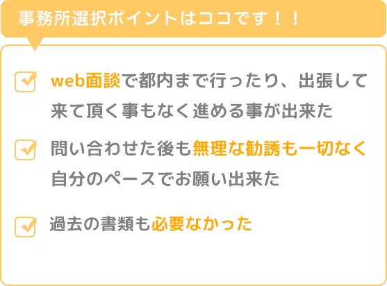 地元で手続きする事に不安を感じている方もweb面談で出来るので安心です。