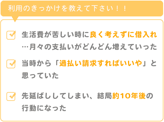 その後、あまり身内に頼れる状況で無かった為、生活費が苦しい時などにあまり良く考えずに借り入れしてしまい、月々支払いがどんどん増えていきました。